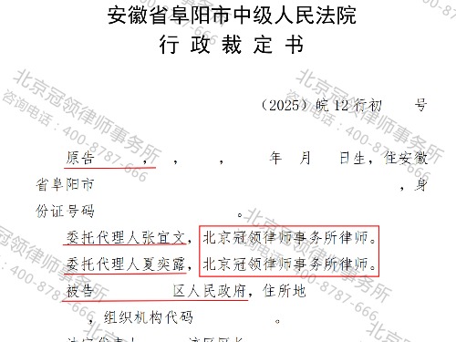北京冠领律师代理安徽阜阳出嫁女成功撤销征收补偿决定